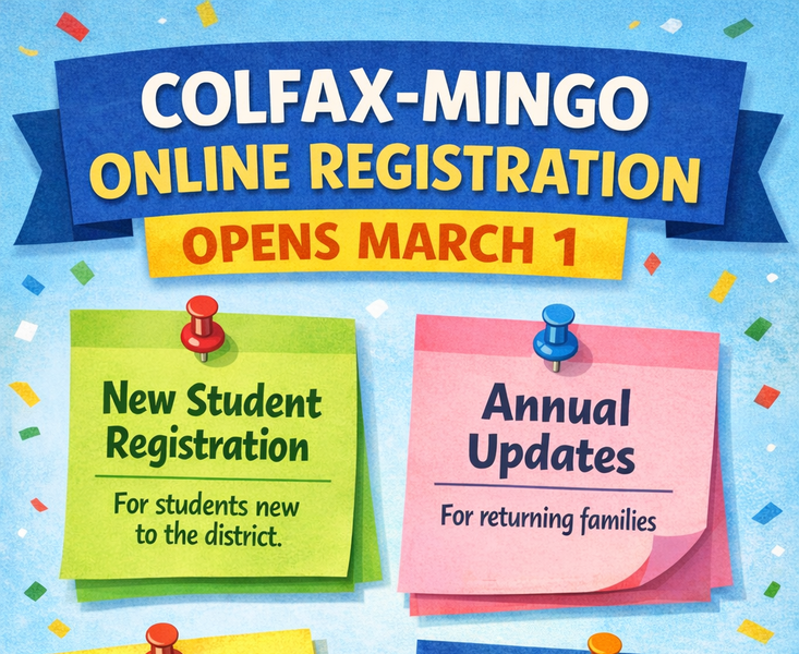 More about usWelcome to our school district! Here’s what you’ll need to know to begin your education with Colfax-Mingo.