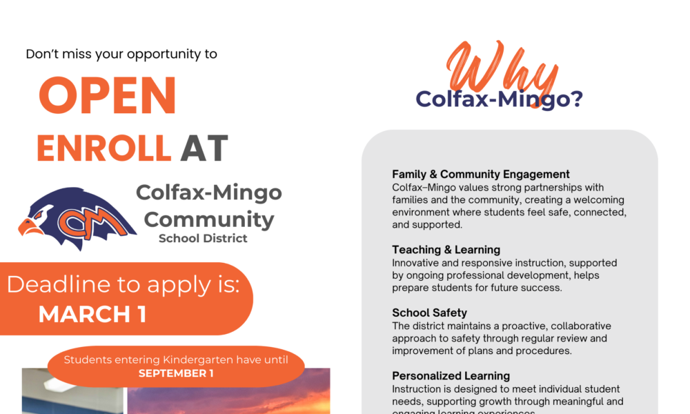 We are excited to announce that enrollment for the Colfax-Mingo Childcare Center will open at 9:00 a.m. on…
